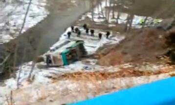 • 客車坐滿學(xué)生 翻進(jìn)深溝