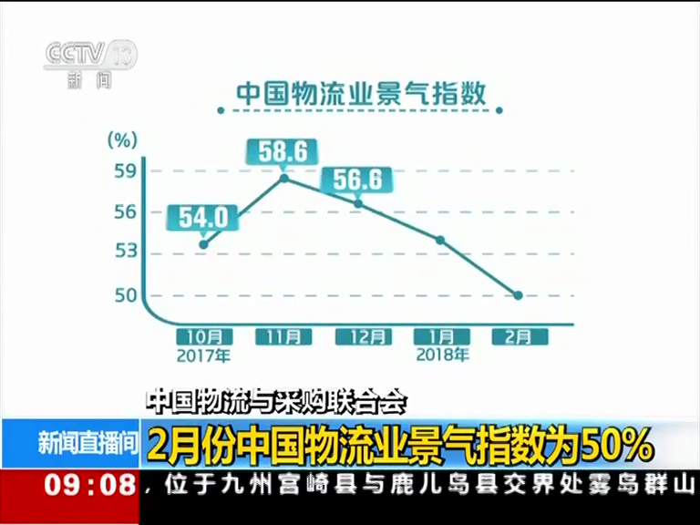 • 2月中國物流業(yè)景氣指數(shù)為50%