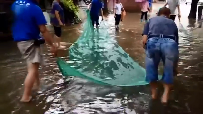 臺(tái)風(fēng)過(guò)境佛山 市民上街撈魚(yú)