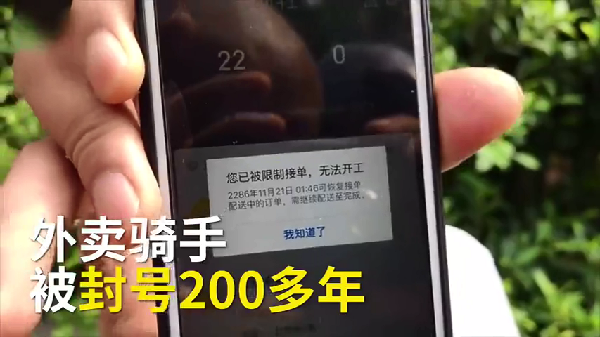 外賣小哥休息3天 被平臺封號268年