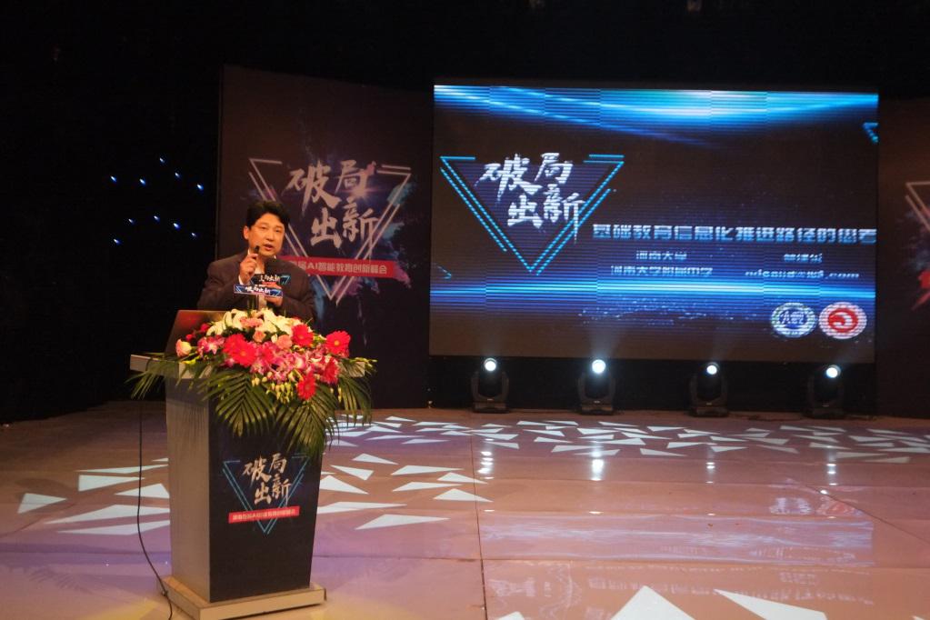 美國佐治亞大學碩士,資深教育人萬禮彬先生,就“國際視野來看中國教育AI智能創(chuàng)新”進行主題分享。萬禮彬先生首先闡述了AI教育背后的責任:不讓一個孩子掉隊。接著介紹了AI智能教育的創(chuàng)新“三化”: 高效化、個性化、數(shù)據(jù)化。得出了人工智能教育創(chuàng)新=個性+效率+關愛+情感的獨特見解。最后,萬先生以“創(chuàng)造是你來到這個世界上的唯一目的”作為結束語,全程國際范兒強互動,與創(chuàng)造創(chuàng)新主題相得益彰,給人留下深刻印象。