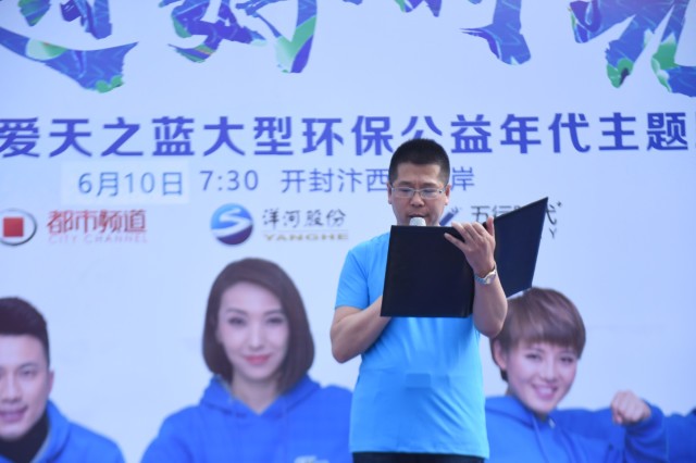 洋河股份開封分公司總經(jīng)理唐儀龍到場致辭,號召開封的朋友們用跑步的方式,傳遞快樂,關注環(huán)保,共同守護天之藍。河南廣播電視臺都市頻道主持人林泉和杜瑞雪主持本次活動。