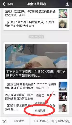 1、微信關(guān)注“河南公共頻道”。