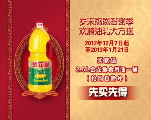 歡騰油禮大方送,買就送2.5L金龍魚豆油一桶,先買先得。