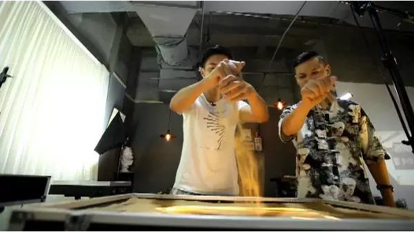 沙子的厚薄出來的效果,就是我們中國(guó)畫的墨分五色,所謂墨分五色就是濃淡干濕燥,其中的奧妙就是沙子和燈光的完美結(jié)合。