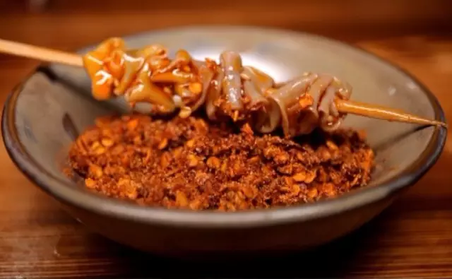 不可錯過的還有自制蝦滑,彈彈的蝦滑在蒜蓉辣醬中一蘸,入口就是獨(dú)有的甜辣味兒,還能吃到小顆粒的泡椒呢,有些吃貨不太喜歡甜口的,那就不妨來試試椒鹽干碟,串串在干碟里轉(zhuǎn)上一圈兒,分分鐘就征服挑剔的嘴巴。
