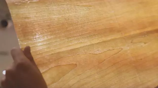 一入實(shí)木深似海,你要練就一雙火眼金睛。就比如這種膠合板,像紙一樣的櫻桃木的皮,把這個(gè)東西往這一粘,一刷漆就成了。