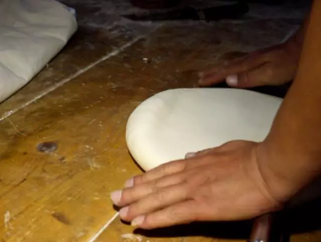 一份發(fā)面混合三份死面反復(fù)揉制,據(jù)說(shuō)這樣做出的鍋葵香甜有嚼勁,而搟面團(tuán)看著簡(jiǎn)單卻是頗有講究,太大鍋里放不下太小就會(huì)熟的慢,做出的鍋葵邊緣也很難產(chǎn)生焦邊。