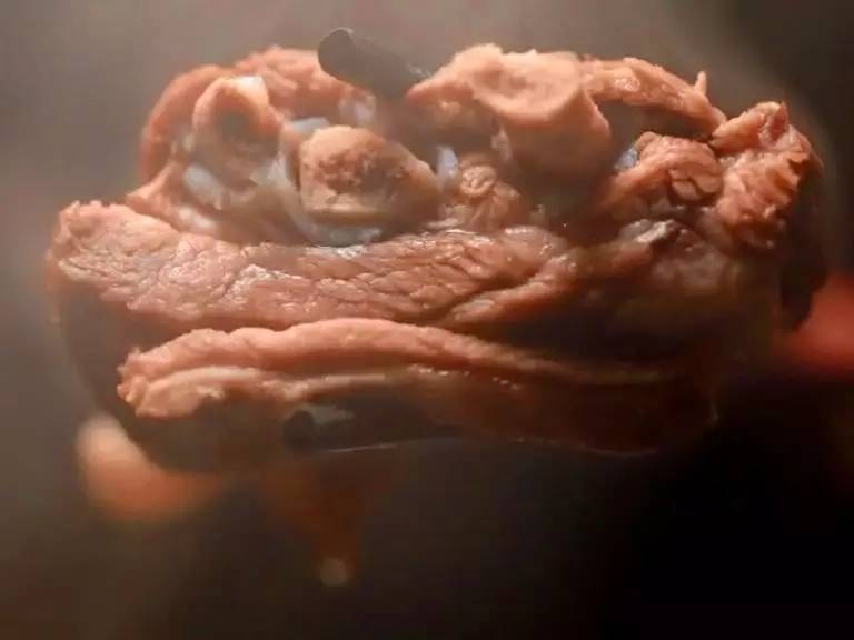 湯鍋中加入冷水,將骨頭下入鍋內(nèi),等水快燒開時撇去浮沫,再下入鹽、還有由八角、茴香等十多種大料組成的秘制料粉。