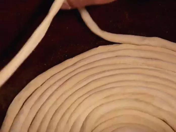 粗粗的面條用手搓勻后粘上玉米面,經(jīng)過兩次盤條變的更細(xì)也更筋道。緊貼盆壁將面條下入盆中,還要經(jīng)過8個(gè)小時(shí)的醒制。