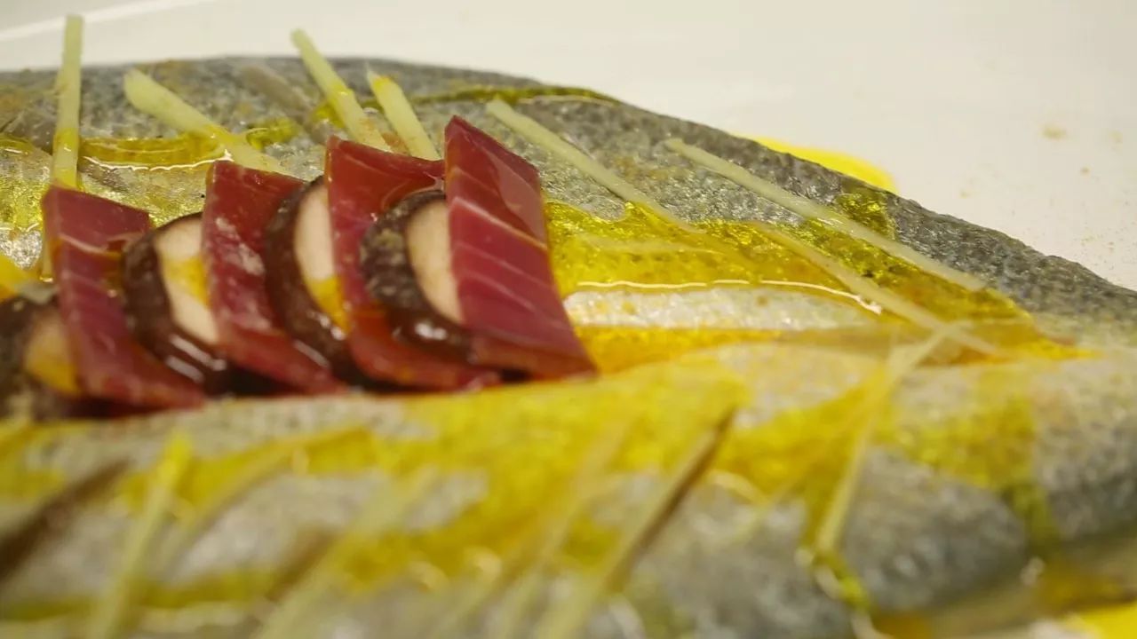 大黃魚(yú)吃的就是一個(gè)新鮮,晚上撈上來(lái)的魚(yú)要連夜送往廚房。一大早就要用花椒、麻椒等十幾種大料腌制兩個(gè)小時(shí),才能把花椒的濃香浸入肉里。而在上爐蒸之前,還要加入一種神奇的料油來(lái)提味。