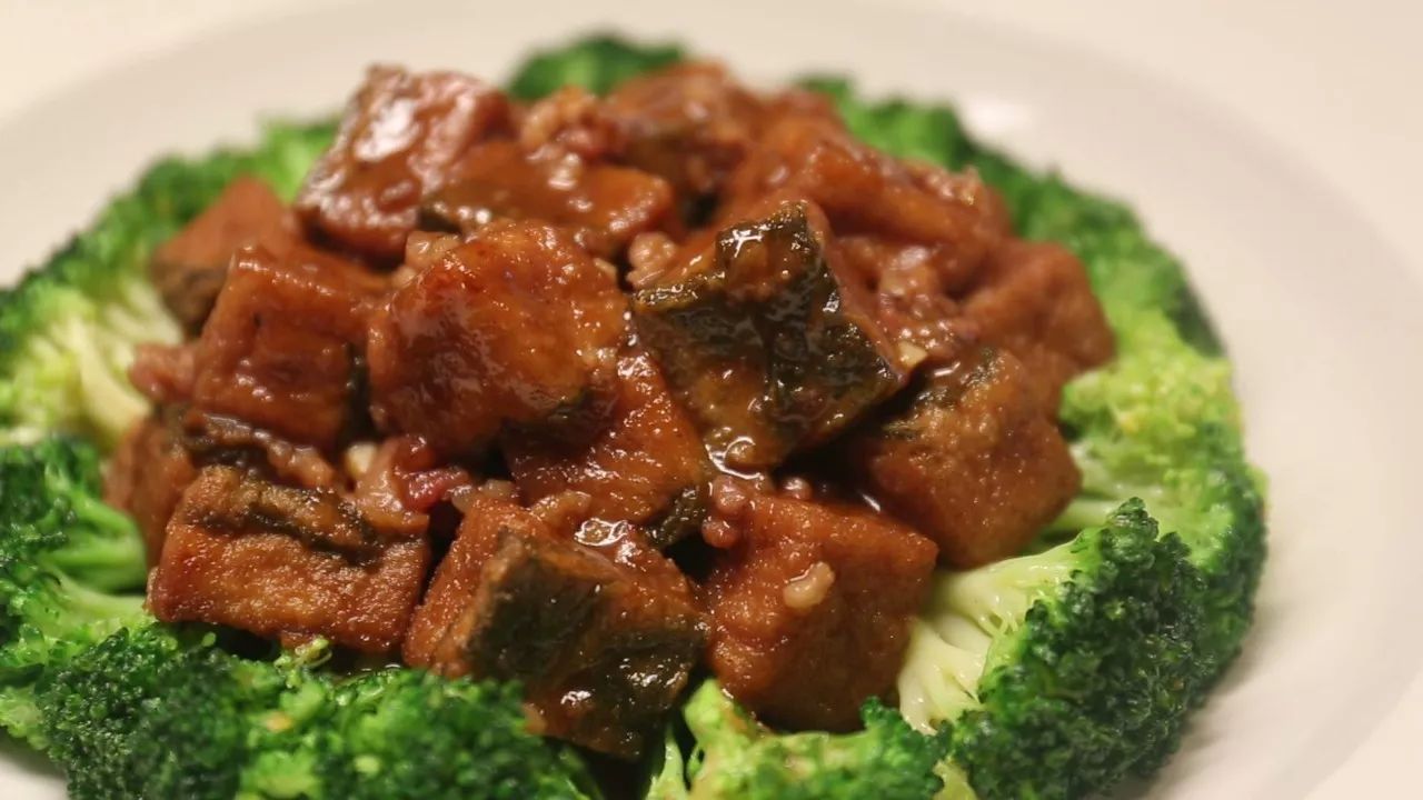主廚研發(fā)的新式廣東菜——萬(wàn)怡黑豆腐,乍一看很像豆腐泡,咬開(kāi)卻是嫩滑的像布丁一樣的雞蛋豆腐。制作時(shí)還特意加入了海苔,也增添了幾分鮮香。肉末和高湯燒成醬汁裹在黑豆腐上,再配上入口即化的雞蛋豆腐,今天的晚飯穩(wěn)了!