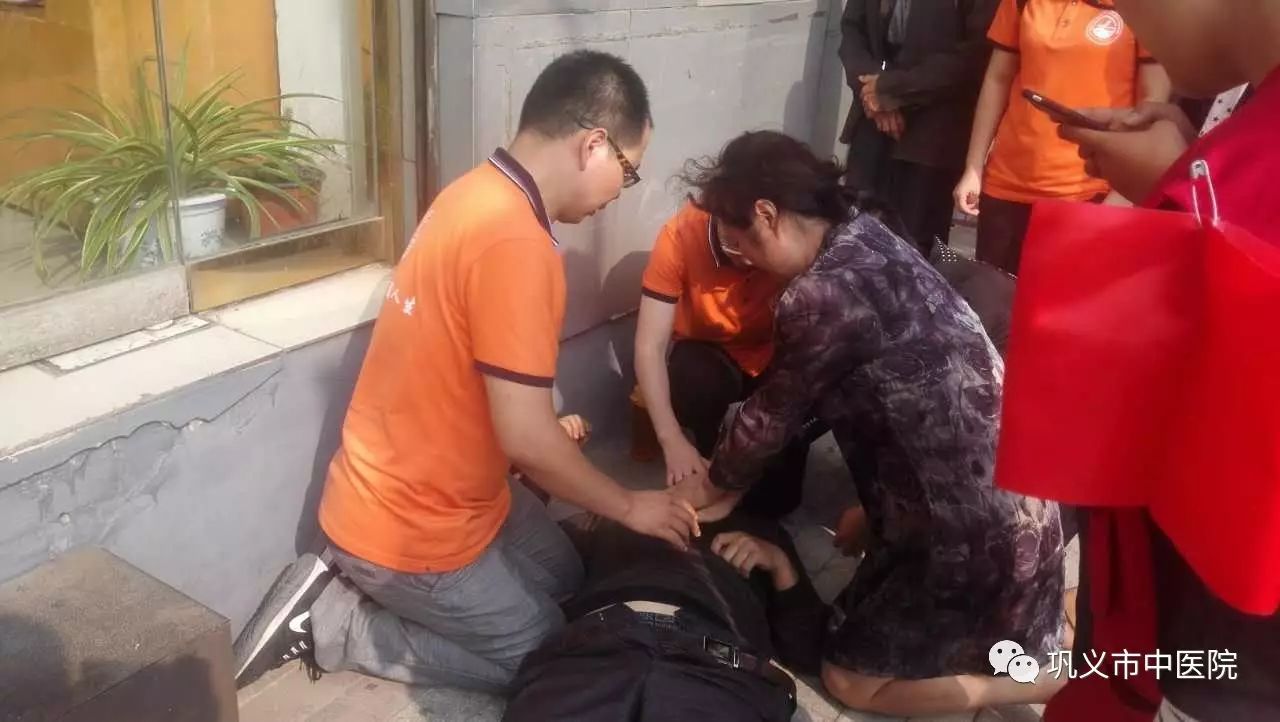 “我是護士,讓我來!”喬紅連忙上前,向?qū)Ψ奖砻孀约菏庆柫x市中醫(yī)院護士后,趕緊上前查看,發(fā)現(xiàn)頸動脈搏動微弱,橈動脈消失,呼吸輕微,雙目上翻,瞬間大動脈搏動消失,多年的臨床經(jīng)驗判斷為“心臟驟?!?,情況十分危急,當(dāng)即把暈倒老人放平,喬紅顧不上自己穿著短裙行動不便,迅速雙膝跪地開始實施徒手心肺復(fù)蘇。同時,讓圍觀群眾撥打急救電話。