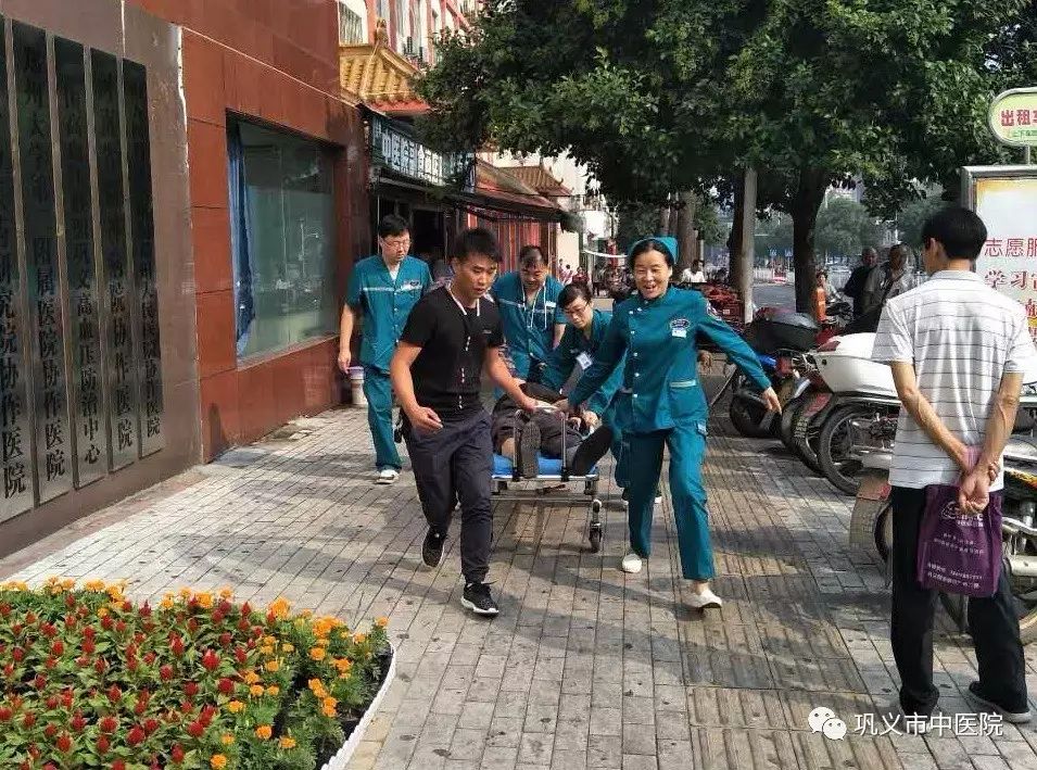 3分鐘后,中醫(yī)院急診科醫(yī)護人員趕到,志愿者、市民與醫(yī)護人員一起把暈倒老人抬上擔(dān)架,由于老人心跳沒有恢復(fù),心臟按壓不能停止,喬紅便隨著擔(dān)架奔跑著為老人做心臟按壓,直到抬到醫(yī)院急診科搶救室。