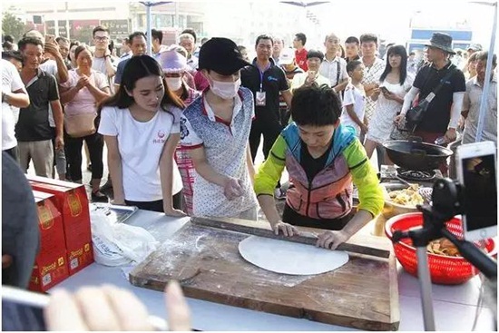 活動當(dāng)天,義賣所得的款項將全部用于孫莊村的扶貧工作。當(dāng)天的網(wǎng)絡(luò)直播點擊量近十萬,也給當(dāng)?shù)睾睖a(chǎn)業(yè)帶來了巨大的品牌效應(yīng)。在活動現(xiàn)場,鄧亞萍還認(rèn)識了忙著炸麻葉的李二磊。嘗了一口二磊炸制的麻葉,鄧亞萍立刻愛上了這種美味小吃,動手跟二磊學(xué)著做起了麻葉。