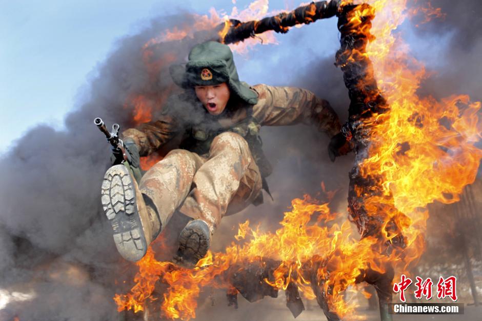 3月5日,黑龍江省軍區(qū)邊防某團(tuán)官兵正在進(jìn)行跨越火圈的實(shí)戰(zhàn)訓(xùn)練。該部結(jié)合未來(lái)邊境作戰(zhàn)特點(diǎn),設(shè)置模擬化戰(zhàn)場(chǎng)環(huán)境,營(yíng)造硝煙滾滾、槍林彈雨、炮聲隆隆的實(shí)戰(zhàn)氛圍,從難從嚴(yán)從實(shí)戰(zhàn)角度出發(fā),深化“仗怎么打、兵怎么練”的實(shí)戰(zhàn)練兵力度,著力提升部隊(duì)實(shí)戰(zhàn)條件下的作戰(zhàn)能力,錘煉官兵敢打硬拼的過硬戰(zhàn)斗作風(fēng)。中新社發(fā) 魏建順 攝