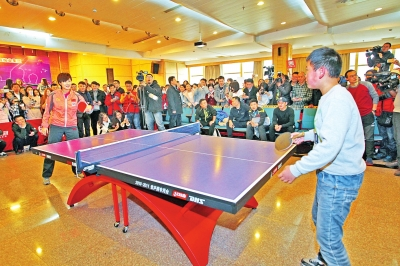 面對冠軍,來自偏僻山村的孩子卻絲毫不露怯,打起球來有模有樣,你來我往多個回合,甚至還中途由橫拍換成直拍。連現(xiàn)場當(dāng)起裁判和解說的國乒隊領(lǐng)隊黃飆都不禁感嘆:“按這樣的打法,要打到明天早上了!”惹得觀眾席陣陣笑聲。