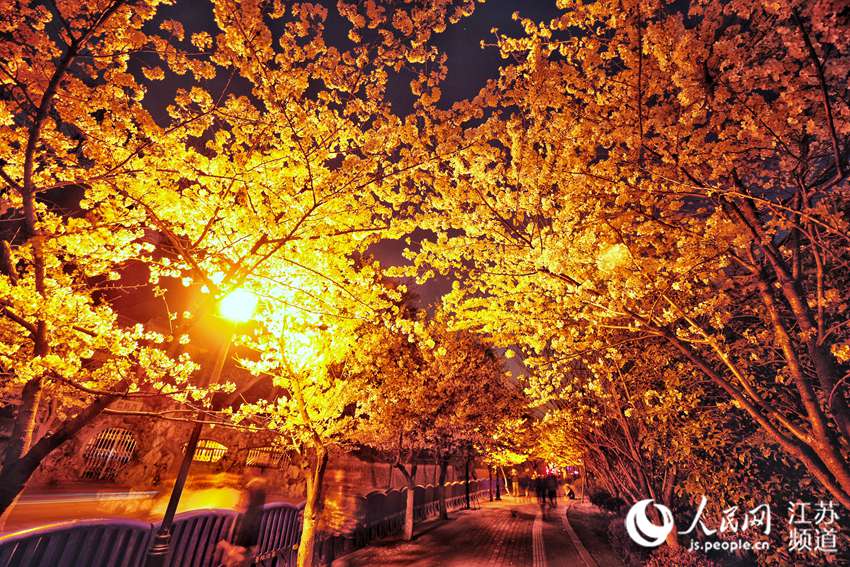 人民網(wǎng)南京3月26日電(馬燾燾)3月中旬開始,在南京市雞鳴寺路,道旁的櫻花隨著坡道蜿蜒而上,錯落有致。慕名而來的游客們爭相拍照,為了保障游客安全和道路秩序,南京交警對這條道路分時段進行了交通管制。太陽落山后,櫻花在燈光的交相輝映下透出別樣的美麗,大量游客駐足于此,流連忘返。此時正是櫻花盛放的季節(jié)。